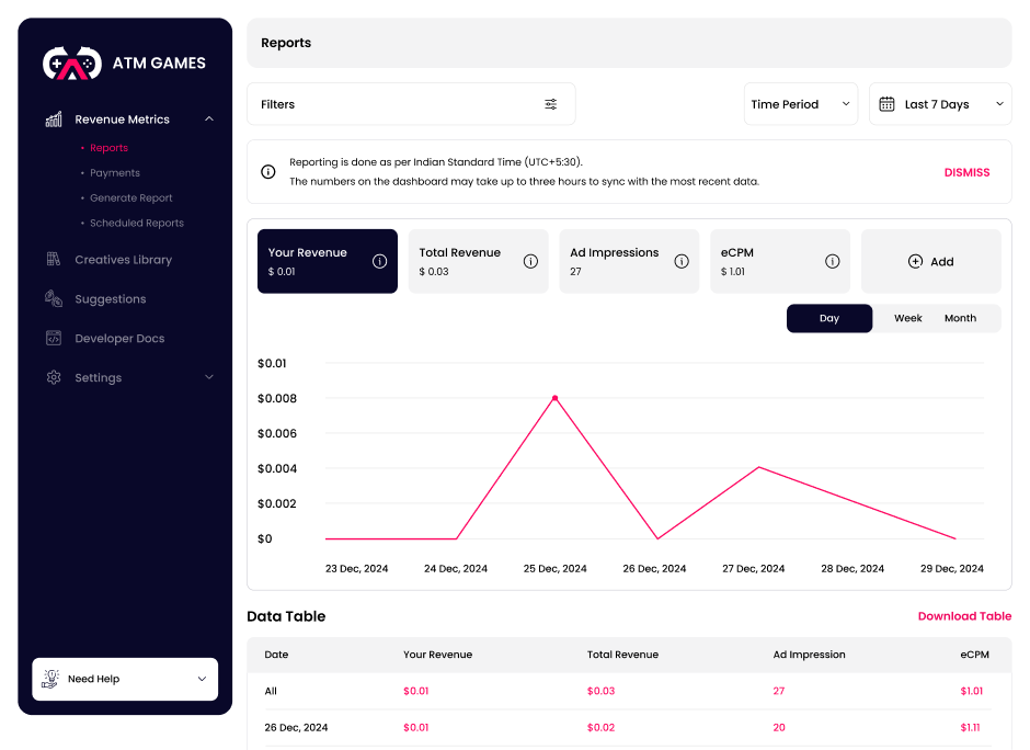 Use our simple earnings estimator to see how much you can earn by embedding ATM Games in your app or site.